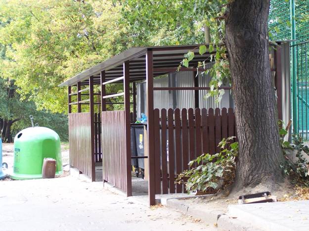 budowę zadaszenia przy miejscu składowania odpadów dla budynków przy ul.