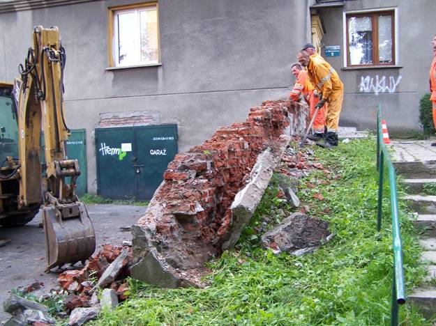 zwietrzałe elementy muru. Nieco przedłużające się prace